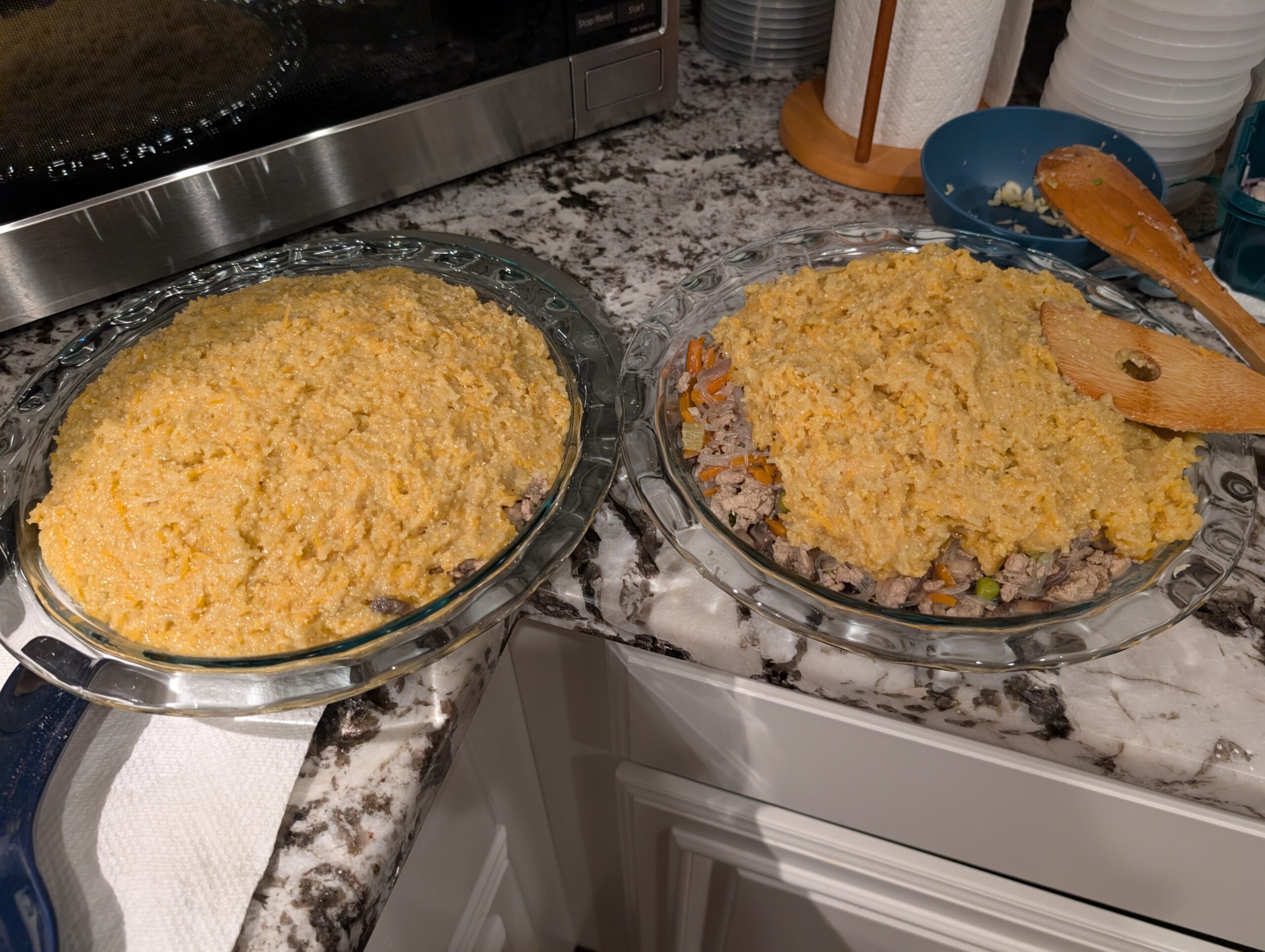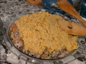 - For more traditional British Shepherd’s Pie, you can substitute ground beef for the turkey or chicken, and use a creamy mash potato pie topper instead of the keto cornbread.